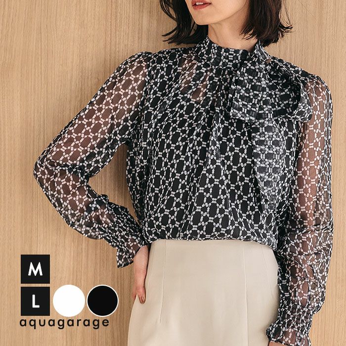 送料無料 総柄長袖ボウタイブラウス 春 秋 冬 レディース ≪ゆうメール便配送20・代引不可≫ | アクアガレージ aquagarage