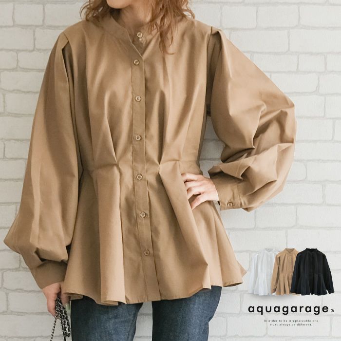 送料無料 ウエストボリュームタックスタンド長袖ブラウス 春 秋 冬 M ≪ゆうメール便配送20・代引不可≫ | アクアガレージ aquagarage