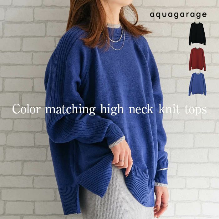配色ハイネックニットトップス レディース 秋 冬 | アクアガレージ aquagarage