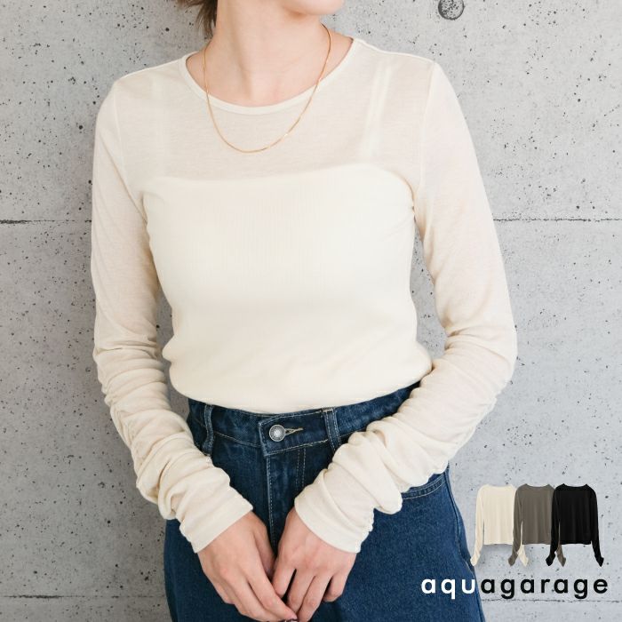 送料無料 袖シャーリングフラッフィーシアートップス 春 秋 冬 M レディース ≪ゆうメール便配送10・代引不可≫ | | アクアガレージ aquagarage