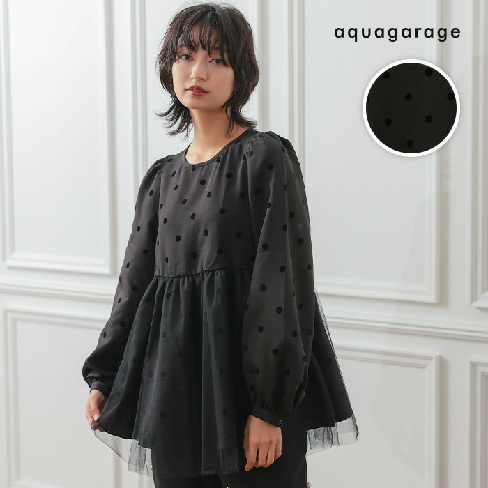 送料無料 パフスリーブドッキングドットペプラムトップス 春 秋 冬 | アクアガレージ aquagarage