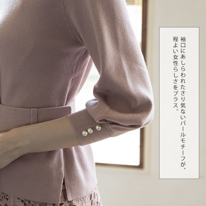 • 袖にパールビーズをあしらったクラシカルな1枚。バルーン袖ニットトップス。