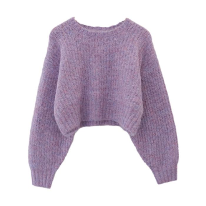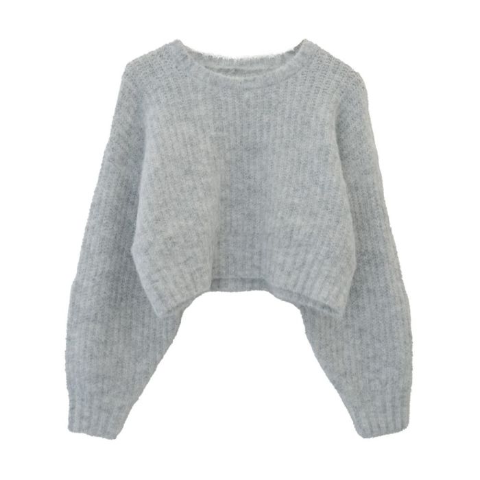 送料無料 ラウンドネックショート丈ニットトップス レディース 春 秋 冬 | アクアガレージ aquagarage
