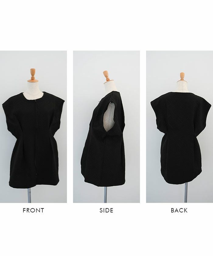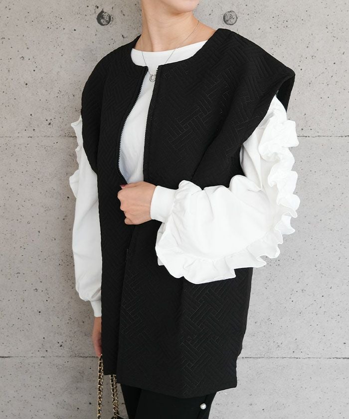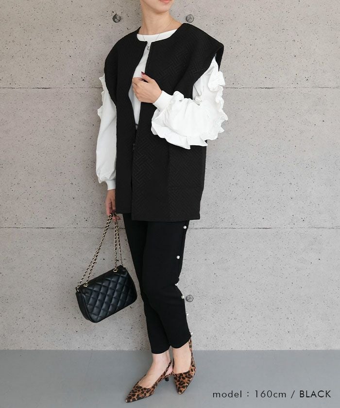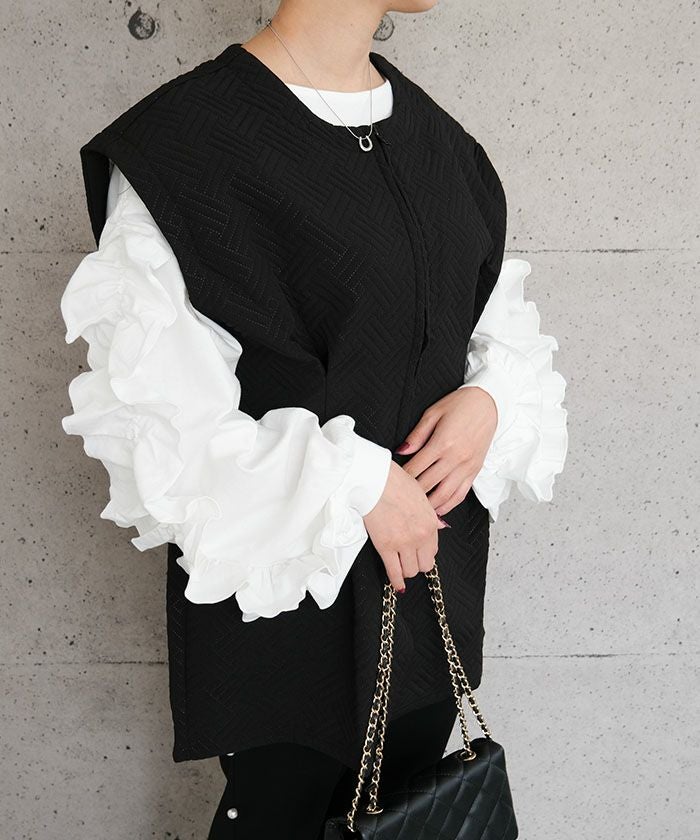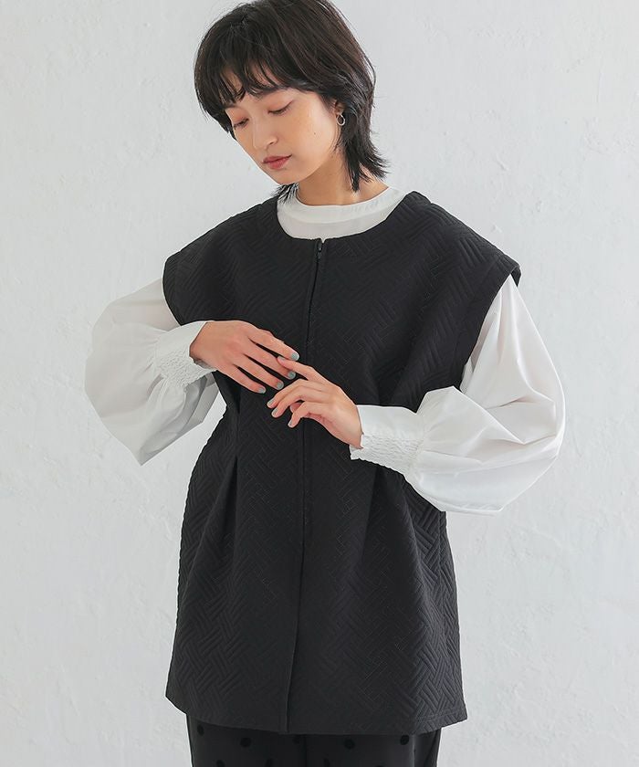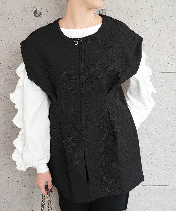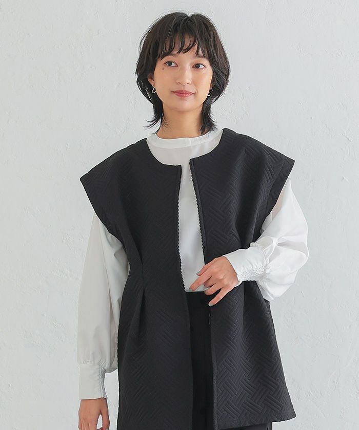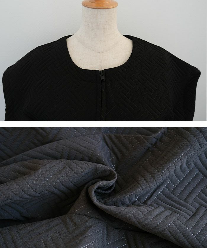 キルト風の柄が入った生地で、ハリ感もあるので綺麗なシルエットに。