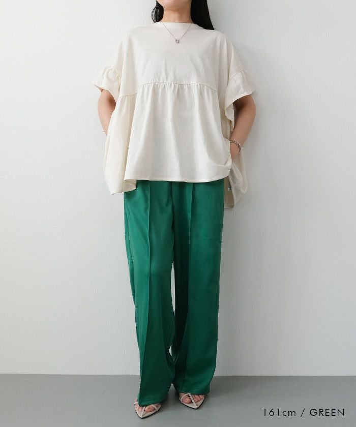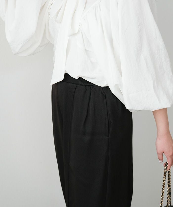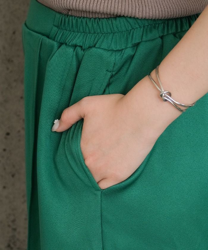 ウエストはゴムで楽ちんながらすっきりシルエット。