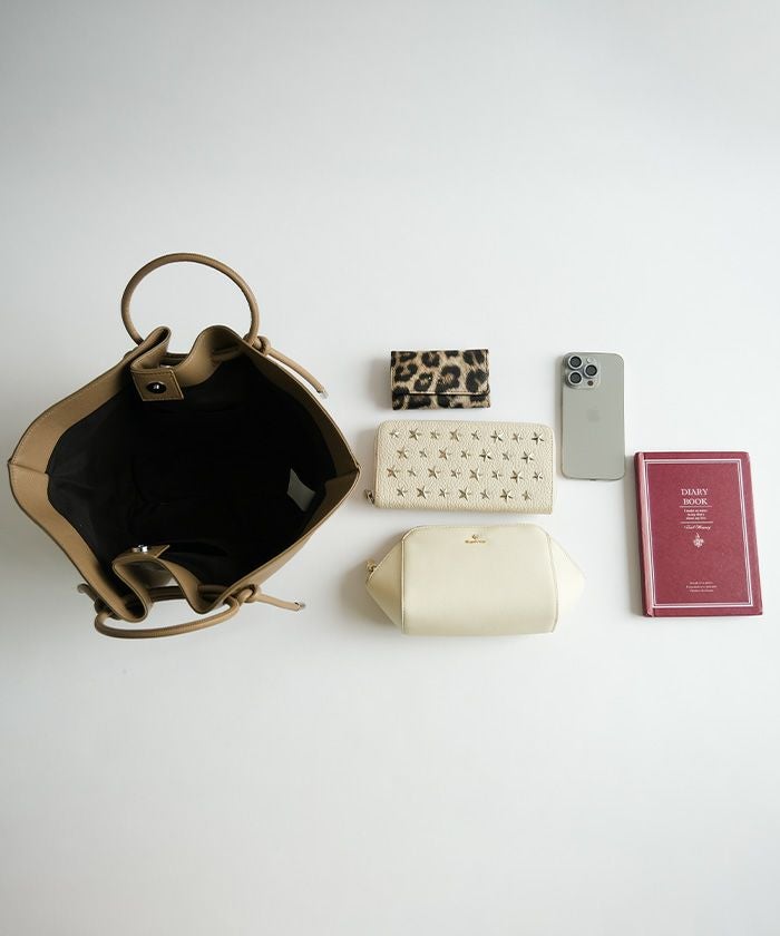 持ち物の出し入れがラクにできる肌なじみの良い柔らかさと大きな収納口。