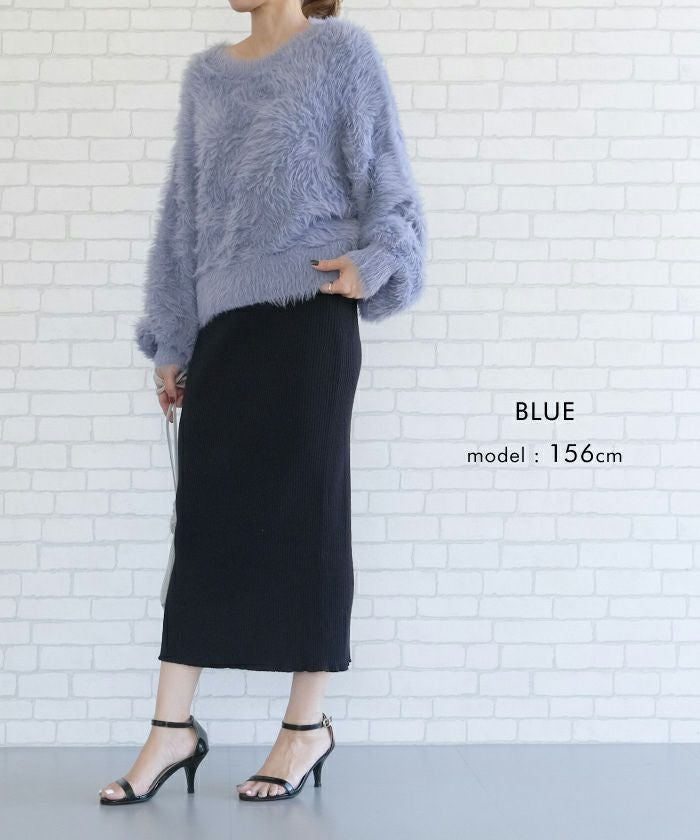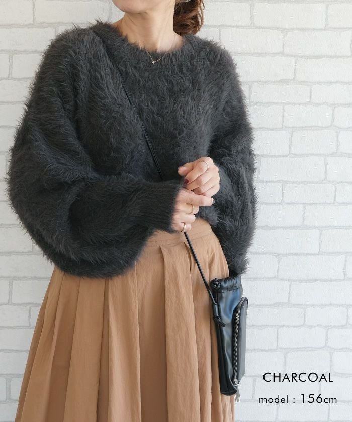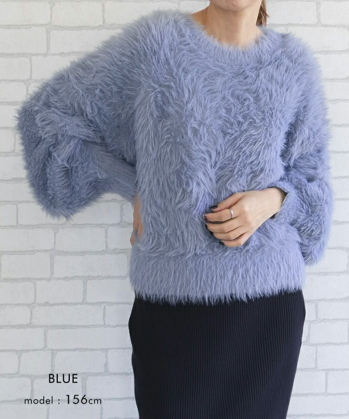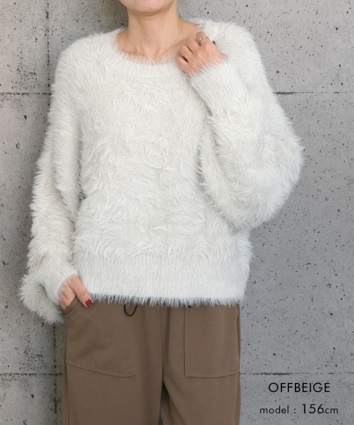 • 肌触りが魅力のシャギーニットラウンドネックトップス