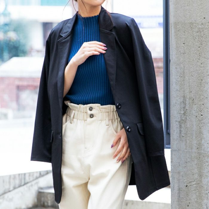 なんにでも合う万能なゆるジャケットはトレンドの色モノにトライ☆