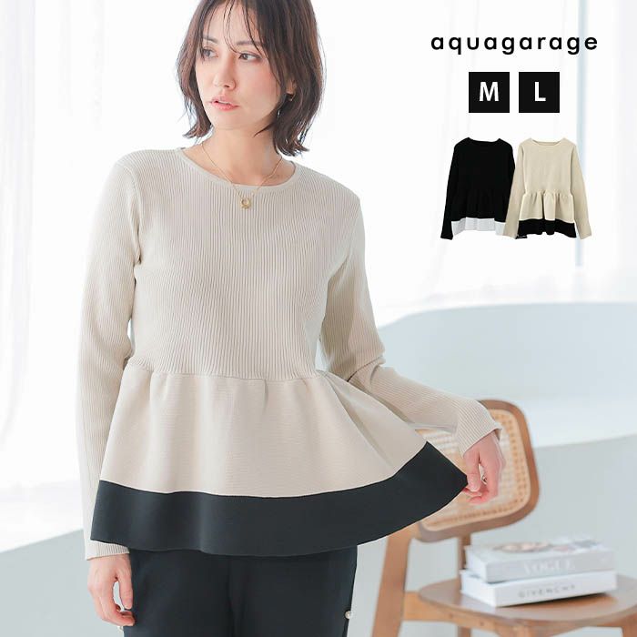 配色スポンジニットペプラムトップス 春 秋 冬 M レディース | | アクアガレージ aquagarage