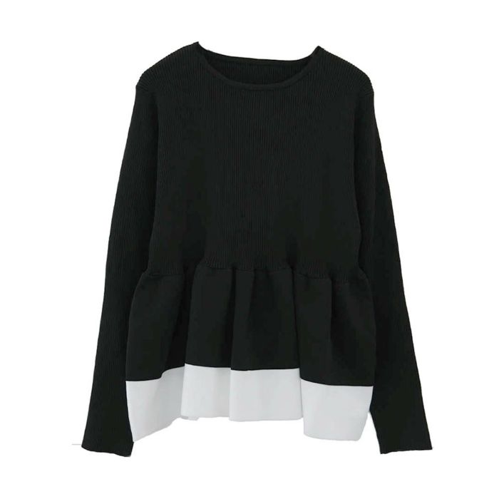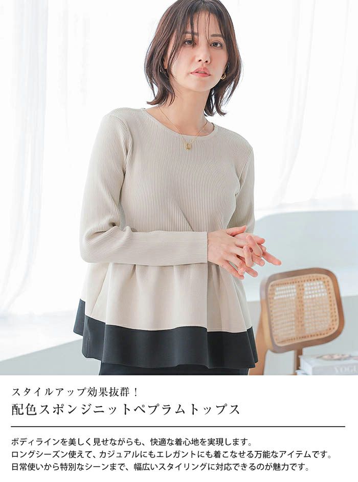 • スタイルアップ効果抜群!配色スポンジニットペプラムトップス