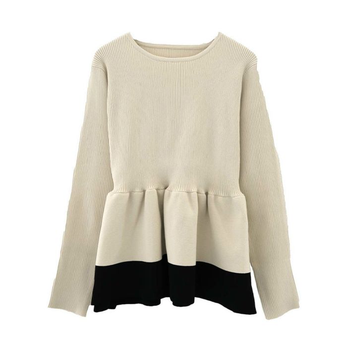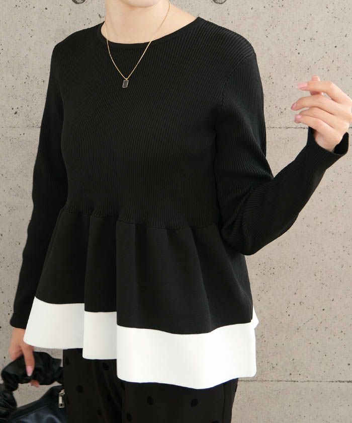 • スタイルアップ効果抜群!配色スポンジニットペプラムトップス