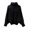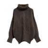 • ざっくりと着られるオーバーサイズのケーブル編みオフタートルニット。