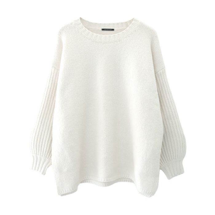 • ふんわりボリュームのある袖で、大人可愛いサイドスリットボリューム袖ニット
