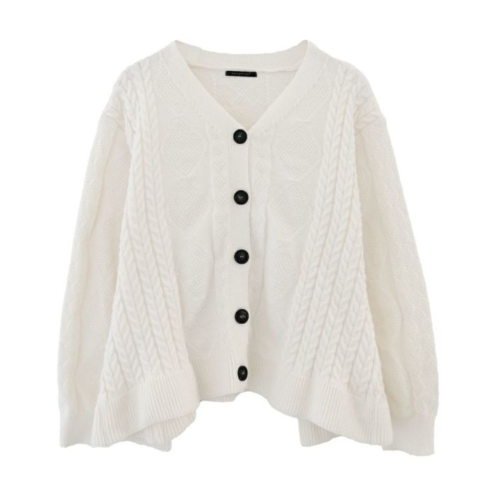 • 女性らしいシルエットのAラインフレアニットカーディガン