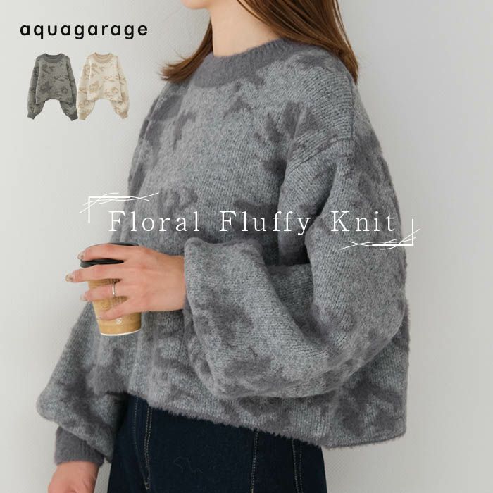 フェザーヤーン花柄ショート丈ニットトップス 秋 冬 | アクアガレージ aquagarage