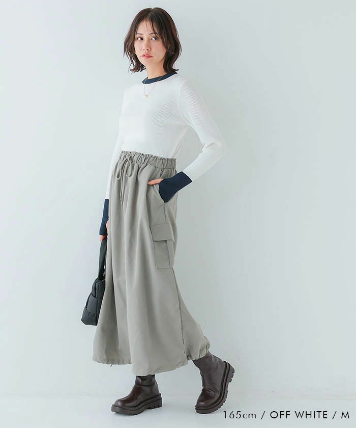 体のラインを拾い過ぎない程よいフィット感のリブデザインで、