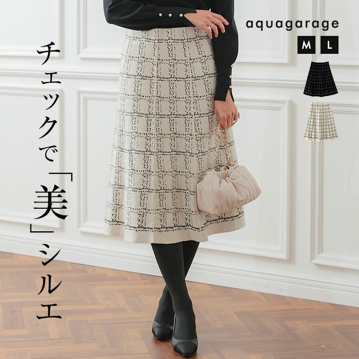 ツイード柄ニットスカート レディース 秋 冬 S M L | アクアガレージ aquagarage