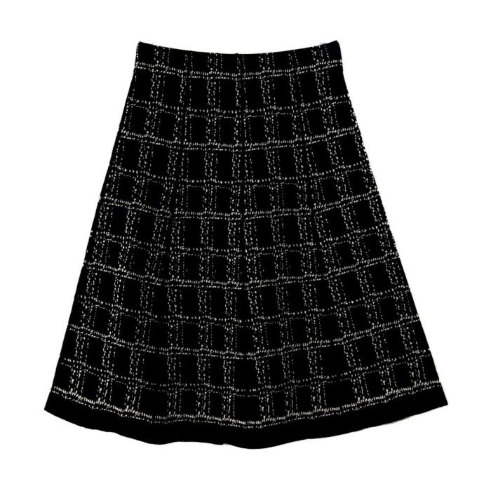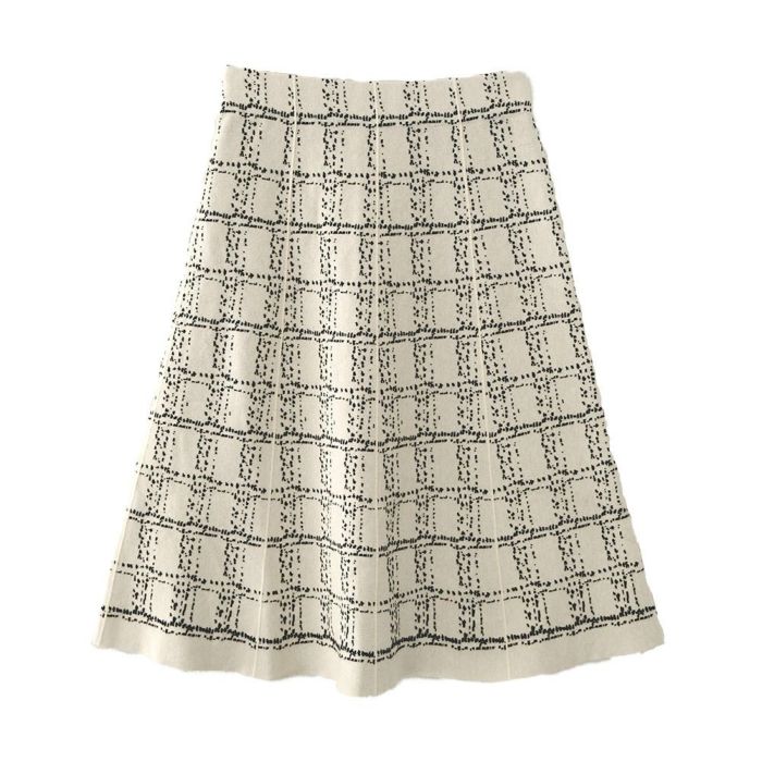 • Aラインが女性らしい印象を与えるツイード柄ニットスカート