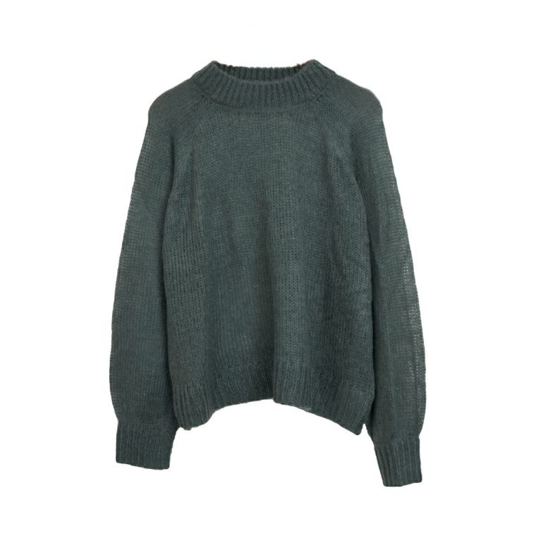 透け感のある編地がスタイリングに抜け感のある女性らしさをプラス。ゆったりとしたシルエットと少し長めの袖丈で華奢見せ効果も◎トレンドのくすんだ色味がお洒落で、コーデに取り入れやすい1枚です。