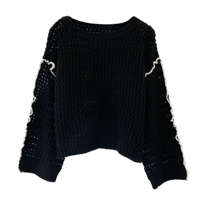 • ざっくりした編み目がポイントのメッシュメローニットトップス