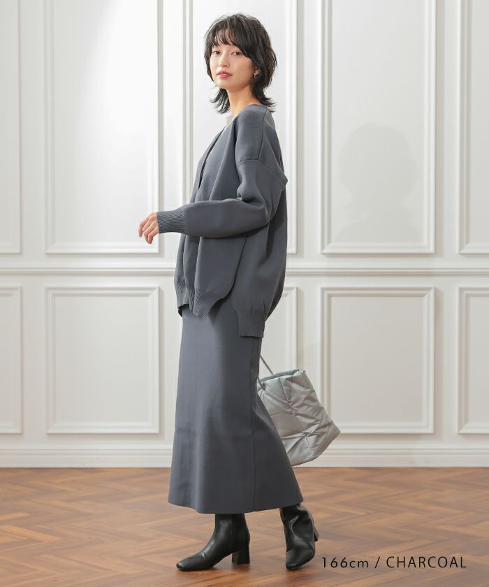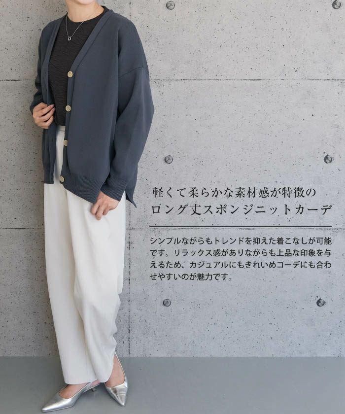 • 軽くて柔らかな素材感が特徴のロング丈スポンジニットカーディガン