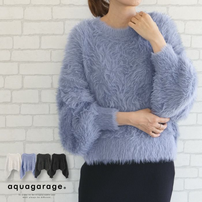 送料無料 シャギーニットラウンドネックトップス レディース 春 秋 冬 | アクアガレージ aquagarage