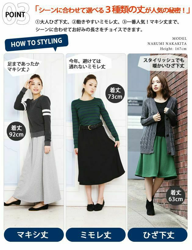 選べる3丈裏起毛スカート ミモレ丈 ひざ下丈 マキシ丈 | アクアガレージ aquagarage