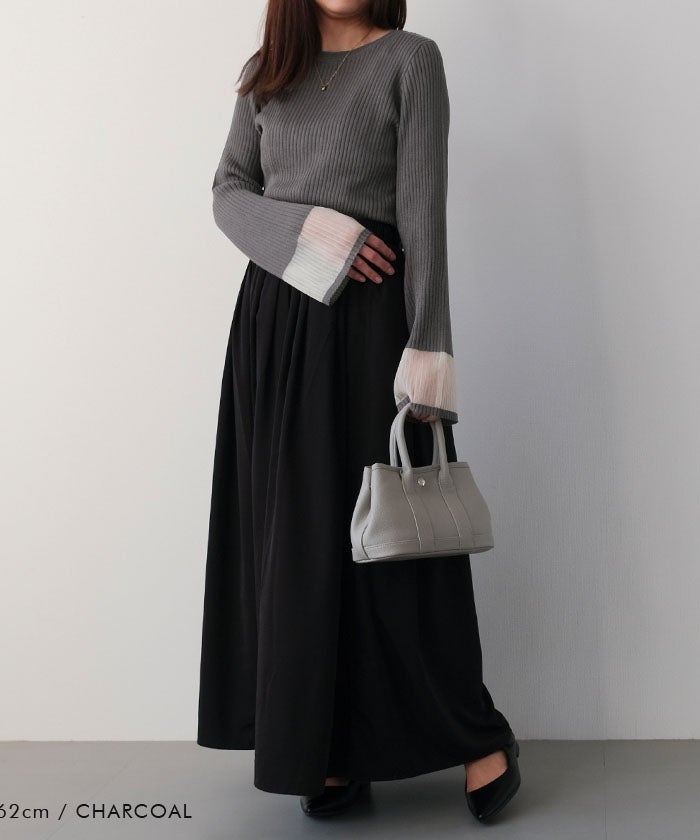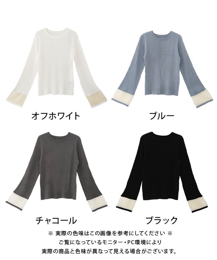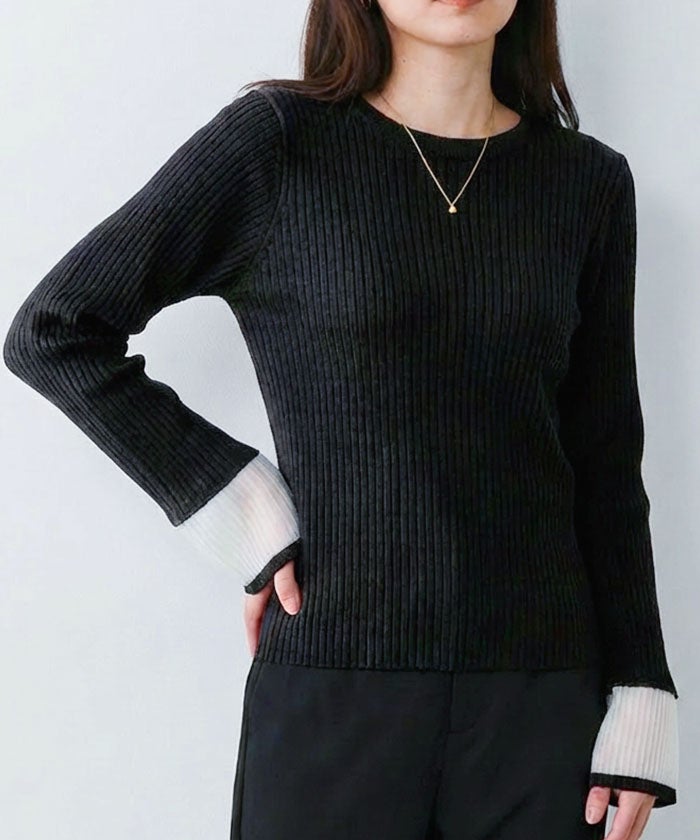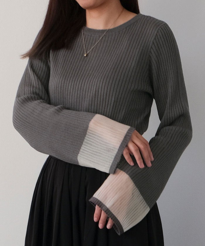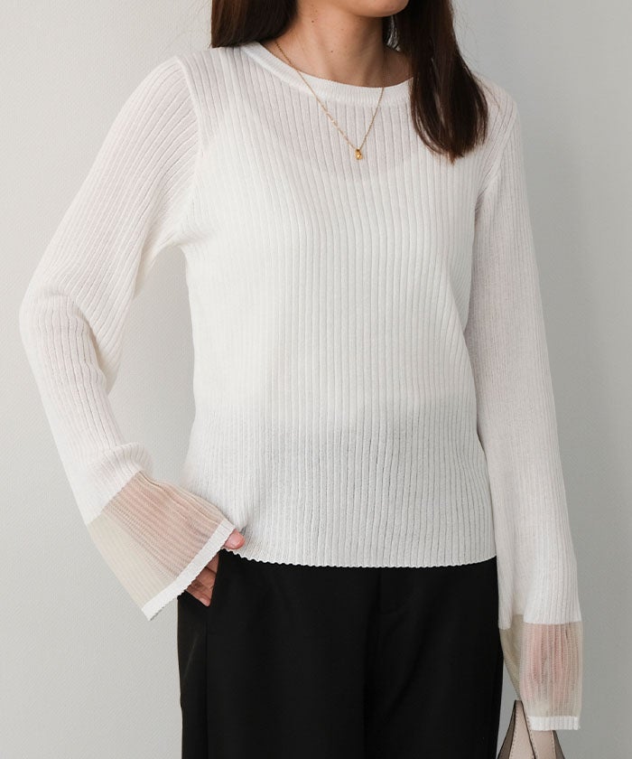 送料無料 袖口シアーニットトップス 春 秋 冬 M レディース ≪ゆうメール便配送10・代引不可≫ | | アクアガレージ aquagarage