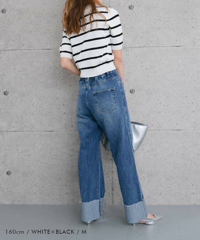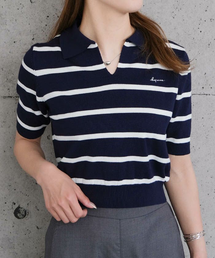 送料無料 襟付きサマーニットトップス レディース 春 夏 M L 半袖 ≪ゆうメール便配送10・代引不可≫ | アクアガレージ aquagarage