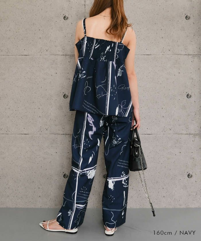 送料無料 セットアップ可 英字柄ワイドパンツ レディース 春 夏 秋 M ≪ゆうメール便配送30・代引不可≫ |アクアガレージ aquagarage