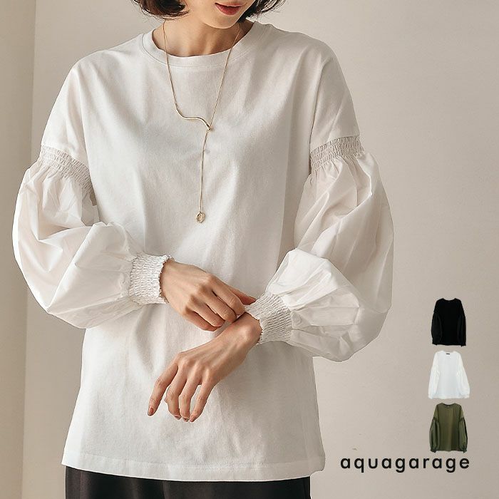 送料無料 異素材MIXパフスリーブカットソー 春 秋 冬 ≪ゆうメール便配送30・代引不可≫ | アクアガレージ aquagarage