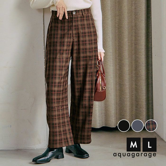 チェック柄ワイドパンツ 春 夏 秋 冬 M L |アクアガレージ aquagarage