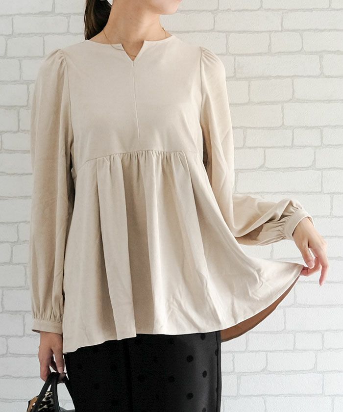 送料無料 スエードキーネックペプラムトップス レディース 春 秋 冬 M ≪ゆうメール便配送20・代引不可≫|アクアガレージ aquagarage