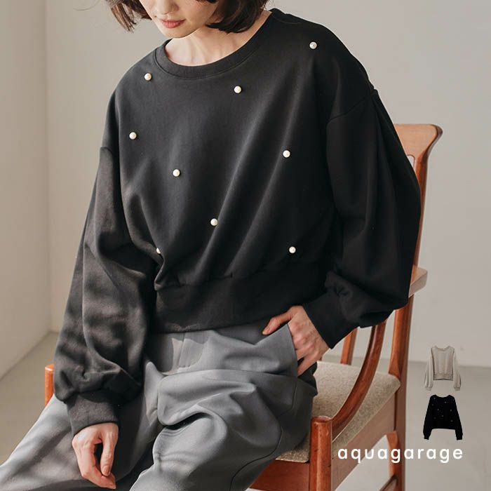 送料無料 袖ボリュームパールトップス 秋 冬 M レディース | アクアガレージ aquagarage