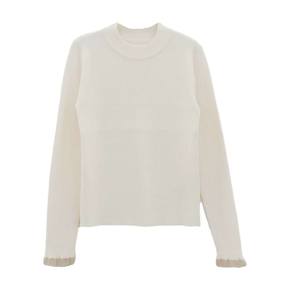 送料無料 ネック袖口フリルニットトップス 春 秋 冬 M L レディース ≪ゆうメール便配送30・代引不可≫ | | アクアガレージ aquagarage