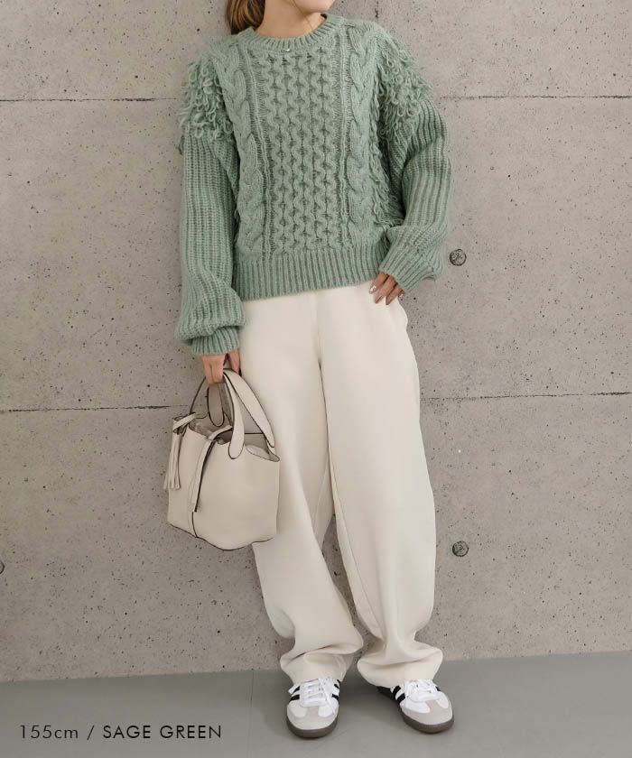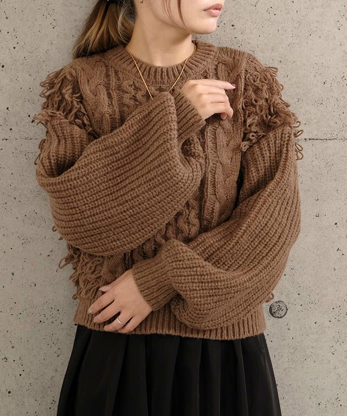 送料無料 ループフリンジケーブル編みニットトップス 秋 冬 M レディース | アクアガレージ aquagarage