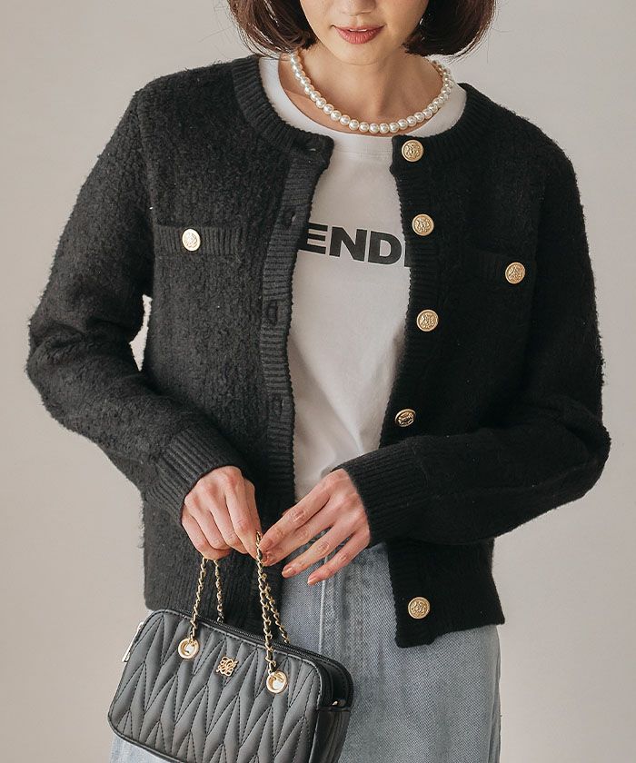 送料無料 ループ編み金ボタンニットジャケット 秋 冬 M レディース | アクアガレージ aquagarage 一部予約(11月中旬頃)