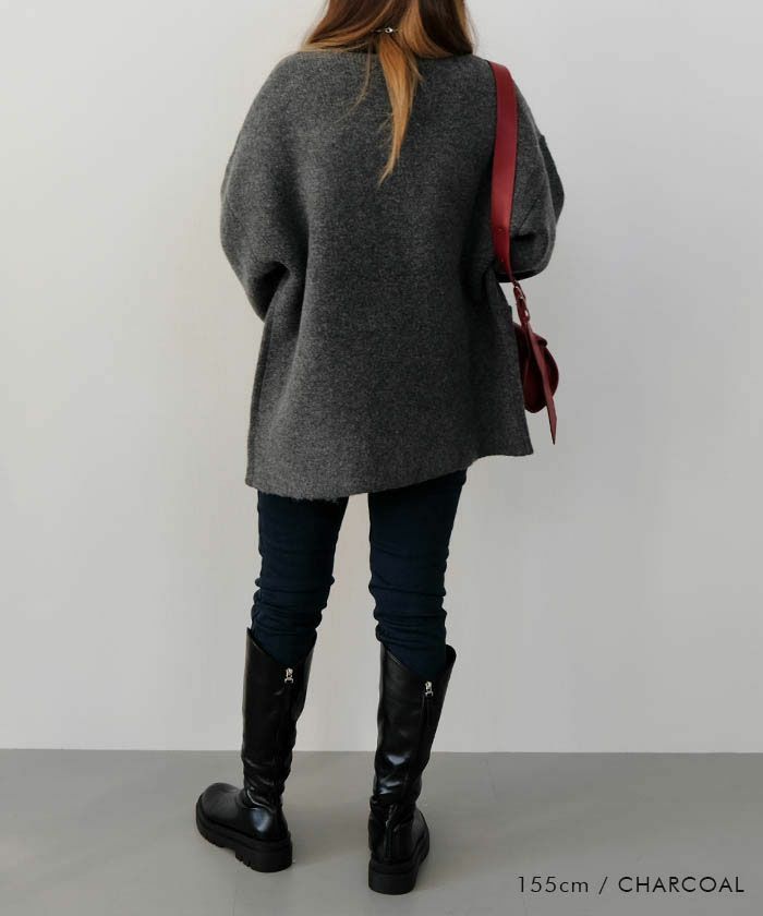 送料無料 ワイドスリーブノーカラーニットジャケット 秋 冬 M レディース | アクアガレージ aquagarage