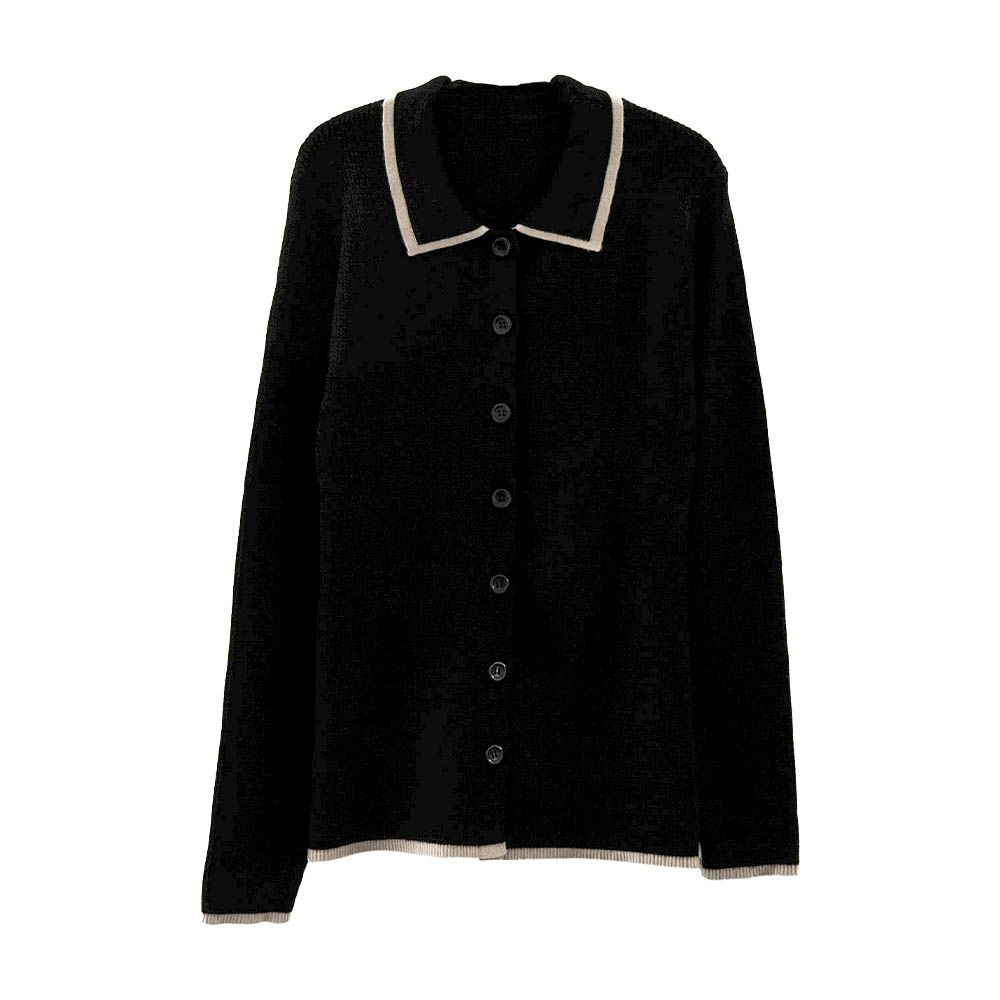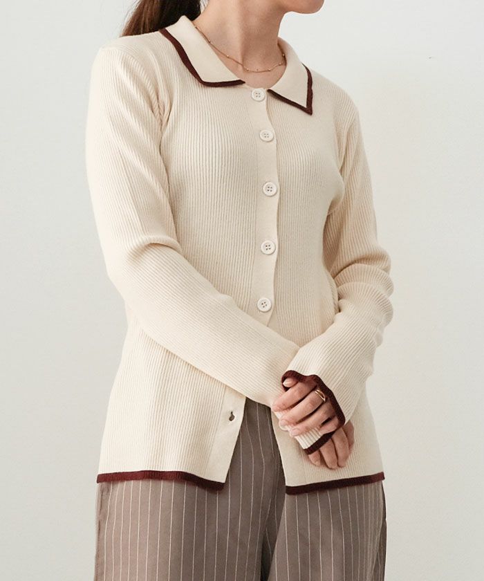 送料無料 襟付きリブニットバイカラーカーディガン 春 秋 冬 M レディース≪ゆうメール便配送30・代引不可≫ | アクアガレージ aquagarage