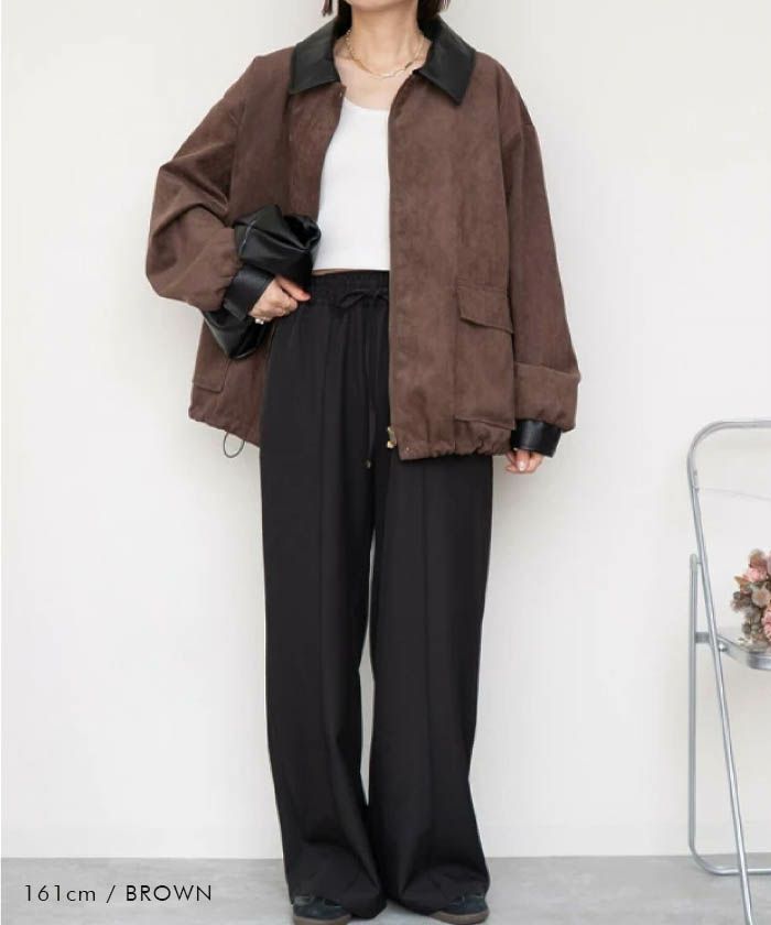 送料無料 襟配色フェイクスエードジャケット 秋 冬 M | アクアガレージ aquagarage