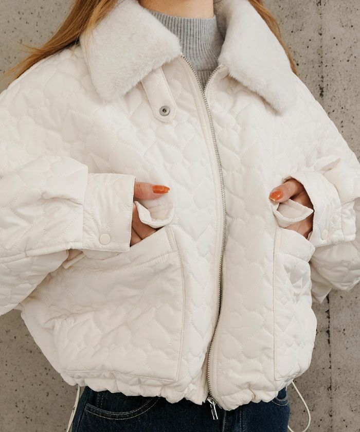 送料無料 ハートキルトファーカラーショートブルゾン 秋 冬 M | アクアガレージ aquagarage