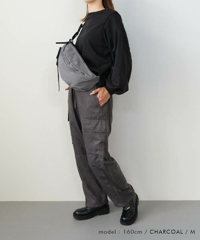 シワになり難く、太さが出過ぎないので、オーバーサイズのトップスとも相性がいいです。