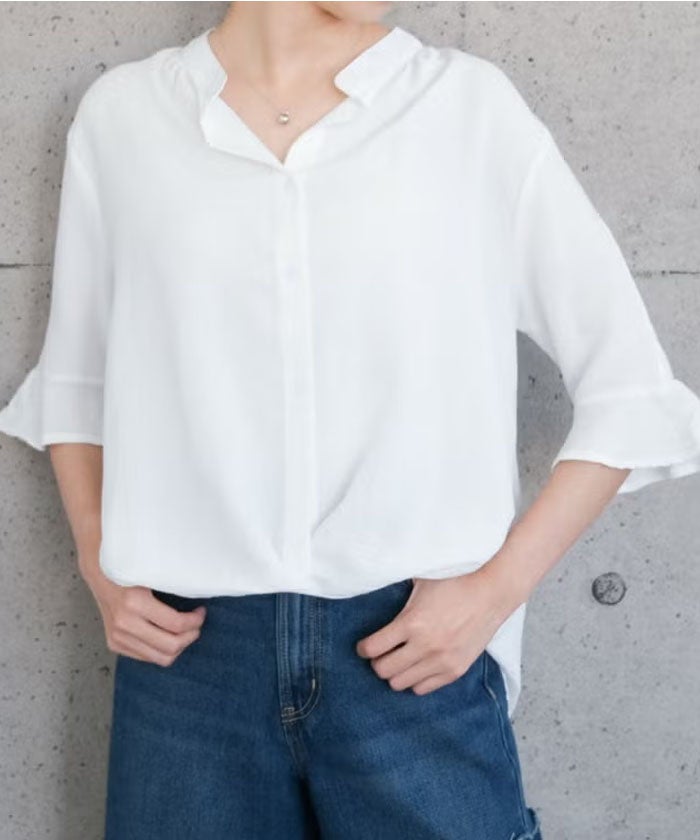 きれいめにもカジュアルにも使える、スキッパーデザインのブラウス。