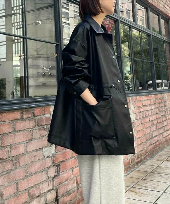 程よいツヤ感と柔らかさが魅力の、フェイクレザージャケット。ハードになりすぎない滑らかな質感と、丸みのあるフォルムで、女性らしく着こなせる一着です。