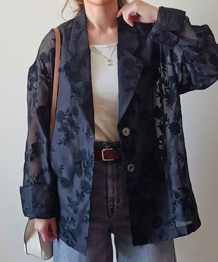 クラシカルなテーラードジャケットに、立体感のある花柄刺繍をあしらった存在感のあるデザイン。