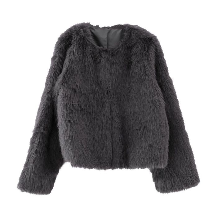 ふわふわとした質感が魅力のノーカラーファージャケット。