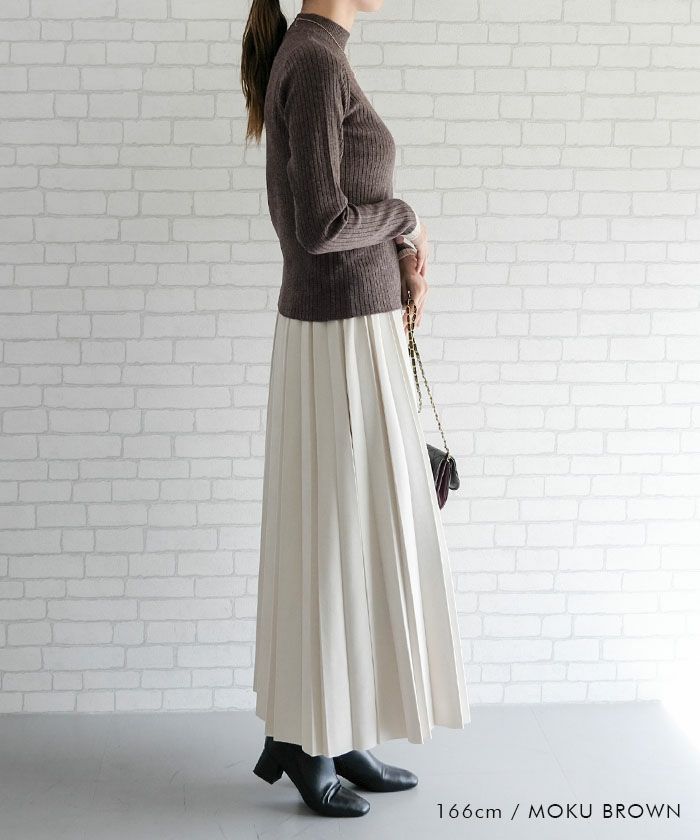 首元はすっきりとしたボトルネック仕様で、上品かつ落ち着いた雰囲気に仕上がっています。