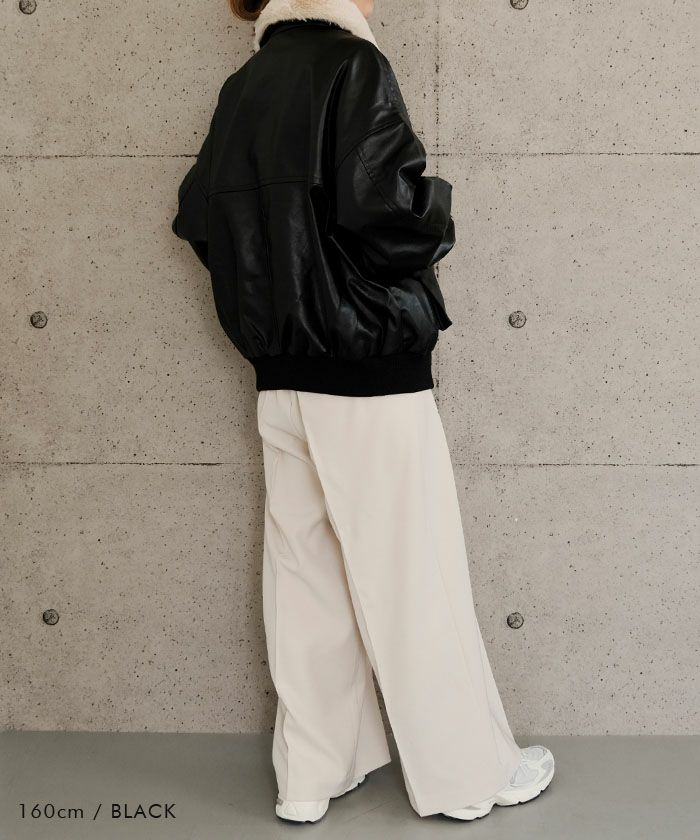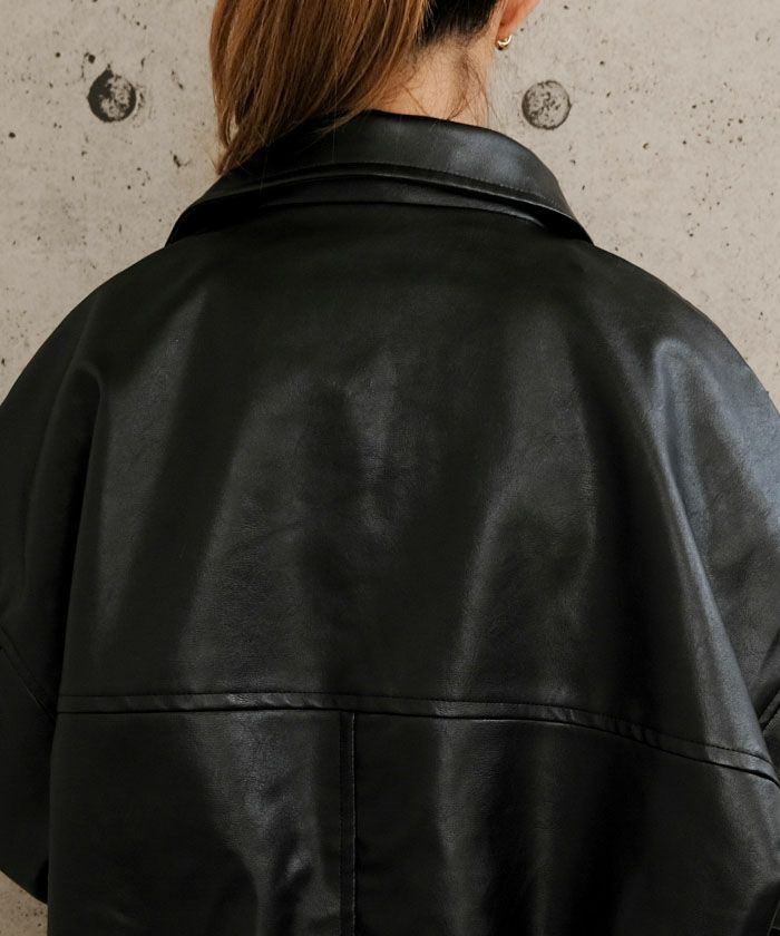 柔らかなフェイクレザー素材を使用し、ハードすぎず大人の女性にも取り入れやすい一枚です。