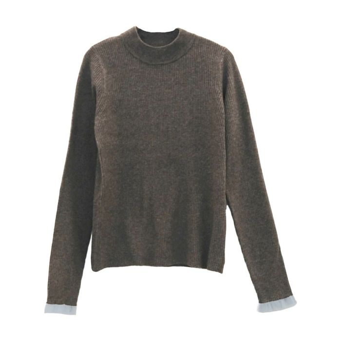 シンプルながらも袖先のアクセントが目を惹き、一枚で着てもコーディネートが決まるデザインです。