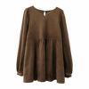 スエードキーネックペプラムトップス レディース 春 秋 冬 M ≪ゆうメール便配送20・代引不可≫|アクアガレージ aquagarage